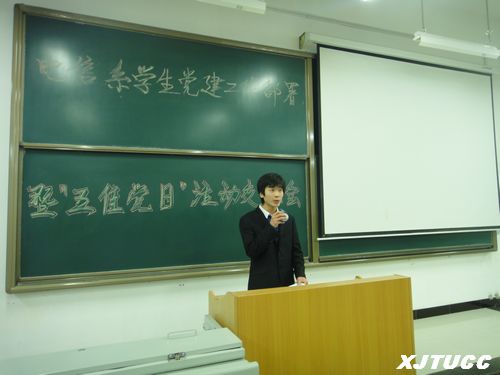 最后,辛红伟老师向大家通报了上学期系学生党建工作情况,并就本学期的学生党建工作做了周密部署。辛老师希望全系学生党员能够“内强素质、外树形象”,充分发挥榜样作用,在“校园文化建设年”中发挥聪明才智,为系里构建精品学生活动积极献计献策。