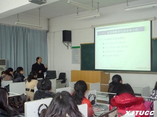韩红建老师首先对本学期大学英语教学任务进行了总体的布置,并向专、兼职教师详尽地介绍了本学期大学英语教学各课程组的课程设置情况,并就各课程组教学的基本理念及设想进行了讲解和阐述。随后,韩老师针对上学期在教学工作中出现的问题,包括教学秩序、课堂教学质量、随堂测试和作业批改以及教风和学风等方面的问题进行了分析,并提出了具体的改进措施。韩老师希望大家做好新学期开课前的各项准备工作,杜绝教学事故的发生,确保教学秩序的稳定,并对两个年级的专、兼职老师提出了具体的教学建议和要求。
