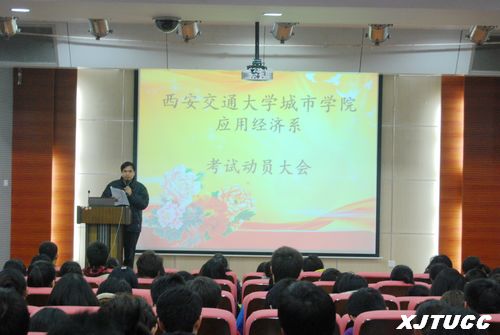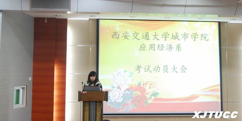 最后,由应用经济系副主任史冬梅老师进行考试动员讲话。她首先对本次应用经济系考试动员大会的必要性给予充分的肯定,同时指出我们学生在考风方面仍然存在很多问题,需要进一步加强教育和引导,对所有党员和学生干部提出“首先自律,然后他律”,并对随后即将进行的英语四、六级考试和期末考试的考风考纪改善提出了明确的要求,再次重申我院秉承优良学风,严明考风考纪的重要举措。