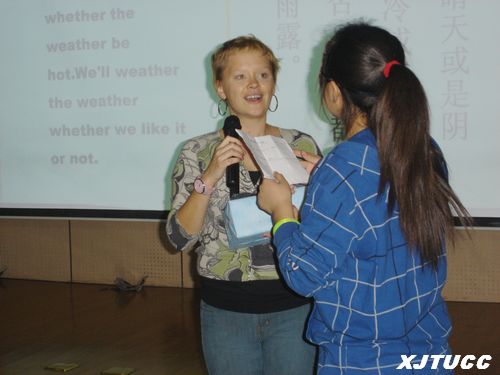 音乐响起,随着主持人声音的渐落,话剧《The Love Through 400 Years》呈现在我们的面前;个人独舞《迈克尔•杰克逊》、表演秀《七真子》、万圣节时装秀、英语绕口令、话剧《老虎拔牙》、文章朗诵等活动,以其独特性让同学们在欢笑中体味到了英语的快乐;歌曲《Titanic》,《Nothing Gonea Change My Love》《Need You Now》的演唱使活动达到高潮,现场充满了欢乐的气息。最后计算机系副主任李联宁老师对本次活动作出总结。至此活动在同学们的欢声笑语中结束。