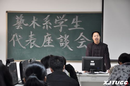 为加强艺术系教学管理和学生管理工作,以期中教学检查为契机,对我系教师的授课情况通过学生代表评教的方式进行全面摸底,艺术系学工办特于11月28日中午十二点半在综合楼视觉传媒实验室召开各年级学生代表与艺术系主任解安宁教授座谈会。