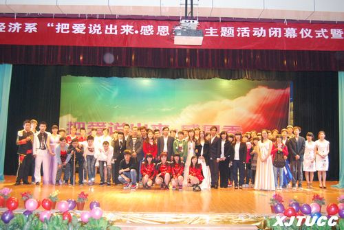 由应用经济系学生会主办的“把爱说出来·感恩季”主题系列活动昨晚在学生活动中心落下帷幕。此次系列活动包括“给老人送温暖”、“旧物改造”、“生活小妙招”、“笑脸征集”、“我眼中的Ta”、“温馨小屋”、“趣味长跑”、“千人绘画”及“‘把爱说出来’主题晚会”。