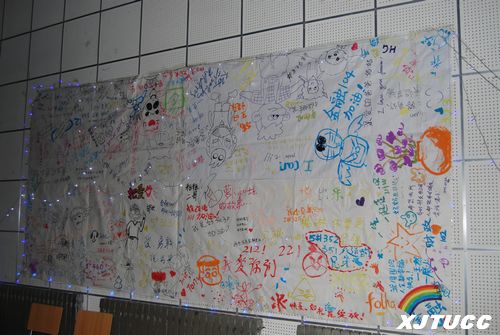 10月20日中午,由系学生会企宣部策划举办的“千人绘画”活动在学院食堂门口开展。在悦耳的音乐、硕大的画纸和充足的颜料下,我们吸引了一批又一批前来画画、写字的同学,他们在紧张的学习之余,来表达自己对朋友的爱、家人和班级的爱。