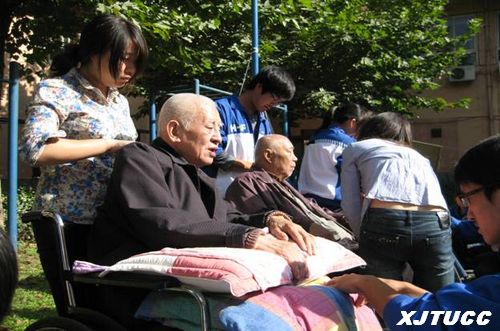 10月15日,由系学生会学习实践部主办的以“关爱老人,传播爱心,感恩社会”为主题的活动正式开展。通过选拔,由70余名同学组成的志愿服务队走进了西安市碑林区第一爱心护理院。期间,青春热情的志愿者们与老人谈心,帮助他们整理内务、打扫卫生、陪老人晒太阳,耐心地为老人们捶背、修剪指甲。为老人们献上了动听的歌声和优美的舞姿,并送上了精心准备的礼物。此次活动受到了老人们的热烈欢迎与高度赞扬,并得到了领导以及护理院院长的认可和赞扬。