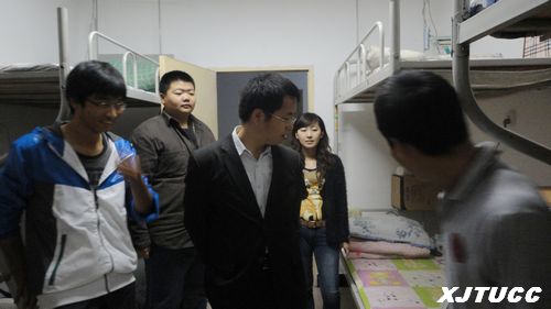 在检查过程中,全体小组人员就宿舍卫生状况、安全隐患等问题进行了耐心、细致的检查,并对宿舍内务进行打分。系学工办负责人辛老师详细询问了各学生宿舍的防盗、就寝和学习氛围情况。他强调,针对近期部分宿舍被盗事件,同学们要继续做好安全防范工作,增强安全防范意识,遵守校纪校规,防范安全事故的发生。团工委书记吴昊翔老师也要求随行的学生会干部要落实安全卫生检查制度,排查各类安全隐患,预防事故苗头,定期招开安全工作例会,真真正正做到为广大同学服务。同时各位辅导员老师在检查期间对学生进行耐心的引导教育,对内务卫生优秀的宿舍进行了表扬,并对有不足之处的宿舍提出了批评和整改建议,有效地整顿了宿舍卫生、安全状况。
