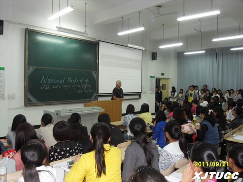 9月21日晚,外语系邀请美国科罗拉多大学教授Anne Bliss女士在教学楼A300给全院学生做了一场主题为"National Park of the USA" and a "sing a song" in English 的讲座。