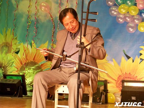 随后,一曲民乐团的《世界上唯一的花》使晚会达到了小高潮,喜欢二胡的机械系主任诸文俊老师更是掩盖不住激动的心情,上台为观众独奏二胡一曲,博得满堂喝彩。
