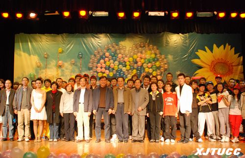 最后晚会在歌曲串烧《相亲相爱》中落下了帷幕。全体演员、工作人员和晚会嘉宾一同上台拍照留念。晚会结束后,机械系主任诸文俊老师慰问了全体工作及演职人员。