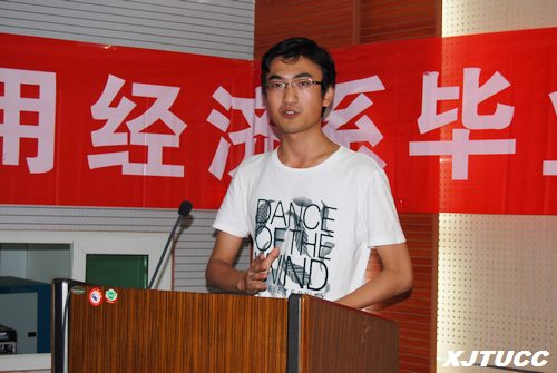 最后,2009届优秀校友代表马骏飞(西安交通大学法学硕士)和代志伟(西安交通大学西方经济学硕士)两位同学,分别就考研准备、研究生学习经历以及如何经营好大学学习和生活等方面分享了他们的学习经验和体会。马骏飞同学提到本科学习的关键是找到自身的兴趣和爱好,并加以培养与训练,从而提升学生的综合竞争力;代志伟同学则从研究生的学习细节谈起,研究生阶段会在科研能力、写作能力、语言表达能力以及人际交往能力等方面得到强化和锻炼。二位校友衷心的祝贺系2011届毕业生学业有成,前程似锦;祝福在校学生学习进步,健康成长;祝愿应用经济系桃李满天下,明天会更好。