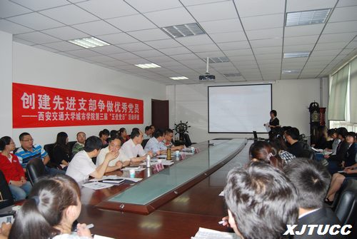 2011年5月24日下午,创建先进支部,争做优秀党员——第三届“五佳党日”评选活动在行政楼508会议室举行。院党委书记赵金胜老师应邀出席。副院长李加玉老师、党政服务中心主任徐君陶老师、学生服务中心主任马兆平老师、教学服务中心副主任李勇老师、学生服务中心教育办公室杨梅老师担任评委。