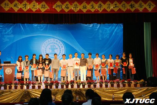 2011年5月20日下午14:00,管理系在学院学生活动中心成功举办“‘举引航之灯,照成才之路’——2011届毕业生学习、工作报告会”。管理系主任卫民堂老师,副主任冀祥老师,首席教授王海民老师,院团委程璟老师、及系学工办全体老师出席了此次大会。