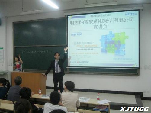 为了增强我系学生的就业竞争力,更好的配合学院开拓学生就业领域,电气与信息工程系于2011年5月9日晚邀请明达科(西安)科技培训有限公司,在我院教学楼A100举办了一次宣讲会。由日籍公司代表笕隆志经理主讲,电信系主任申忠如教授、副主任赵录怀教授、辅导员刘秋歌、韩利娜,以及08级电信系全体学生参加。