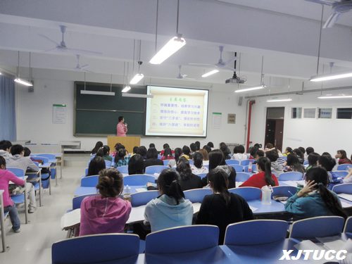 首先高兵龙向同学们做了题为《如何学好大学数学》的报告,他针对同学们在数学学习中的薄弱环节展开讨论和深入分析,明确培养学习兴趣的重要性;增强自信心,提高学习效率;坚守“三步走”,强化针对性;做好“六部曲”,争取好成绩等四个方面通俗易懂地向同学们阐述了学习数学时应具备循序渐进的学习方法和认真细心的严谨态度。