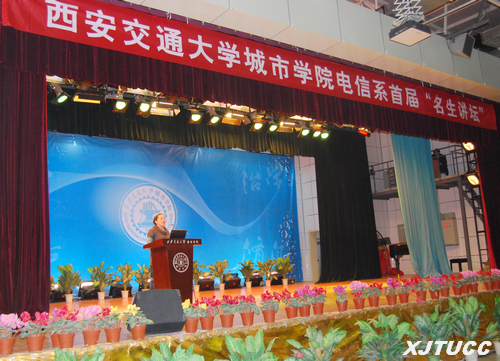 3月16日晚七点,我院大学生活动中心座无虚席,掌声阵阵。为倡导先进、树立典型,全面深入地贯彻实施我院“校风建设年”活动,电信系学工办举办了首届以“学名生事迹、听先进讲坛、扬淳朴校风”为主题的“名生讲坛”活动。电信系主任申忠如老师、副主任赵录怀老师、实验室主任王世文老师、学工办负责人杜亚辉老师以及全体辅导员老师和同学参加了大会。大会由杜亚辉老师主持。