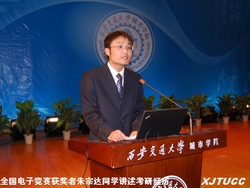 最后,电信系主任申忠如老师为此次报告会做了总结讲话。他首先肯定了这次活动的深远意义,并对四名优秀毕业生共同的整体综合素质给予了充分肯定:一、设立远大的目标,对自己有正确的规划;二、有吃苦的精神,能为自己的目标付出辛劳;三、找寻正确的适合自己的学习方法,平衡学习与课外活动的关系;四、积极参加活动,锻炼自己各方面的能力;并号召同学们以四位报告人为榜样,努力学习、勤于实践、敢于拼搏、开拓创新、努力成为综合素质好、业务水平高、工作能力强、全面发展的优秀人才。