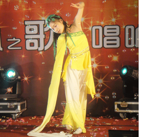 在总结大会上,经济系教改903班张薇同学给陕西农心公司全体员工亲情奉献了一曲古典舞蹈《青柳清风》,以其专业、优美的舞姿打动全场观众,将总结会的气氛推向了高潮。该节目并评为“最佳人气奖”。