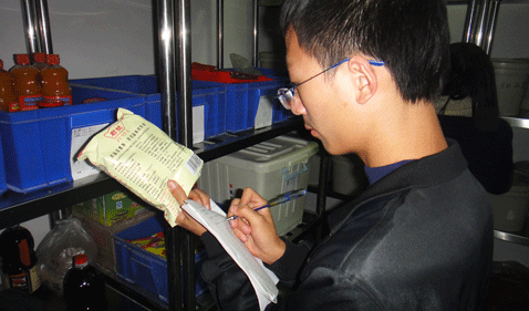 2010年12月1日,为了保障学院师生饮食健康和安全,更好地为学生服务,院生活园区自治委员会伙食权益部对民族食堂操作间、主副食加工间、蒸煮间、洗消间、主副食库等进行了认真细致的检查,对具体原材料对应的生产商、生产地址、生产日期、保质期及是否有安全标识等进行了详细的登记。