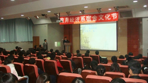 2010年11月19日,由应用经济系团工委、学生会主办的为期一个月的首届宿舍文化节闭幕仪式暨颁奖典礼在F100多媒体教室隆重举行。应用经济系主任杨健全老师,副主任史冬梅老师、市场营销教研室郭官科老师、国际经济教研室张洛民老师、金融教研室牛峰老师、学工办陈涛老师和王飞老师出席此次活动。