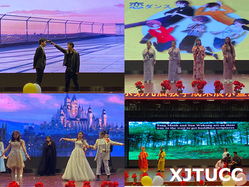 本次演出在精彩热烈的开场舞中拉开帷幕,包括温馨有爱的英文歌曲合唱《Young and beautiful》、节奏明快的纸杯舞《Cups》、改编自经典影片的舞台剧《无间道》、诙谐幽默的漫改剧《我是大哥大之喜欢本大爷的居然没有一个》等一系列精彩的节目。在台上,同学们cosplay成剧本中人物的造型,或嬉笑搞怪、或剑拔弩张、或正襟危坐,十分投入。学生在原著的基础上稍作改编,有的男同学甚至进行反串,表演女生的角色,增加了整个表演的趣味性,逗得观众啼笑皆非,掌声不断,现场的气氛在观众的呐喊欢呼声中达到顶峰。最终,经过激烈的角逐,本次演出日语181班荣获特等奖,英语194班、193班获得一等奖。