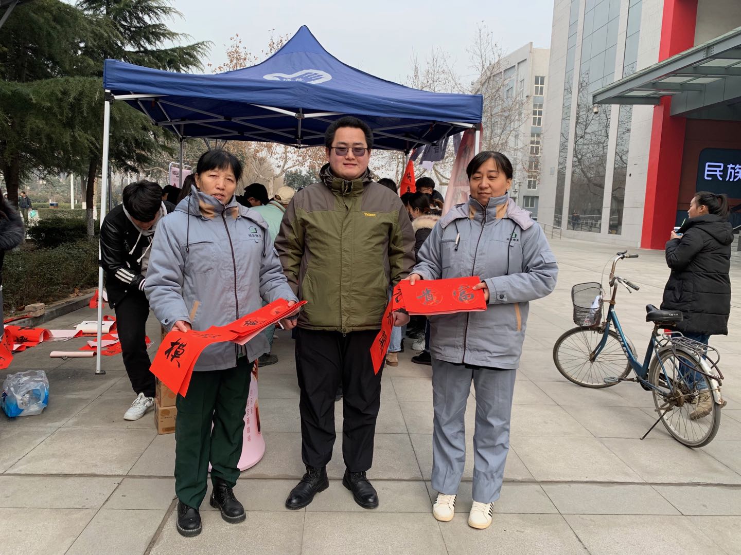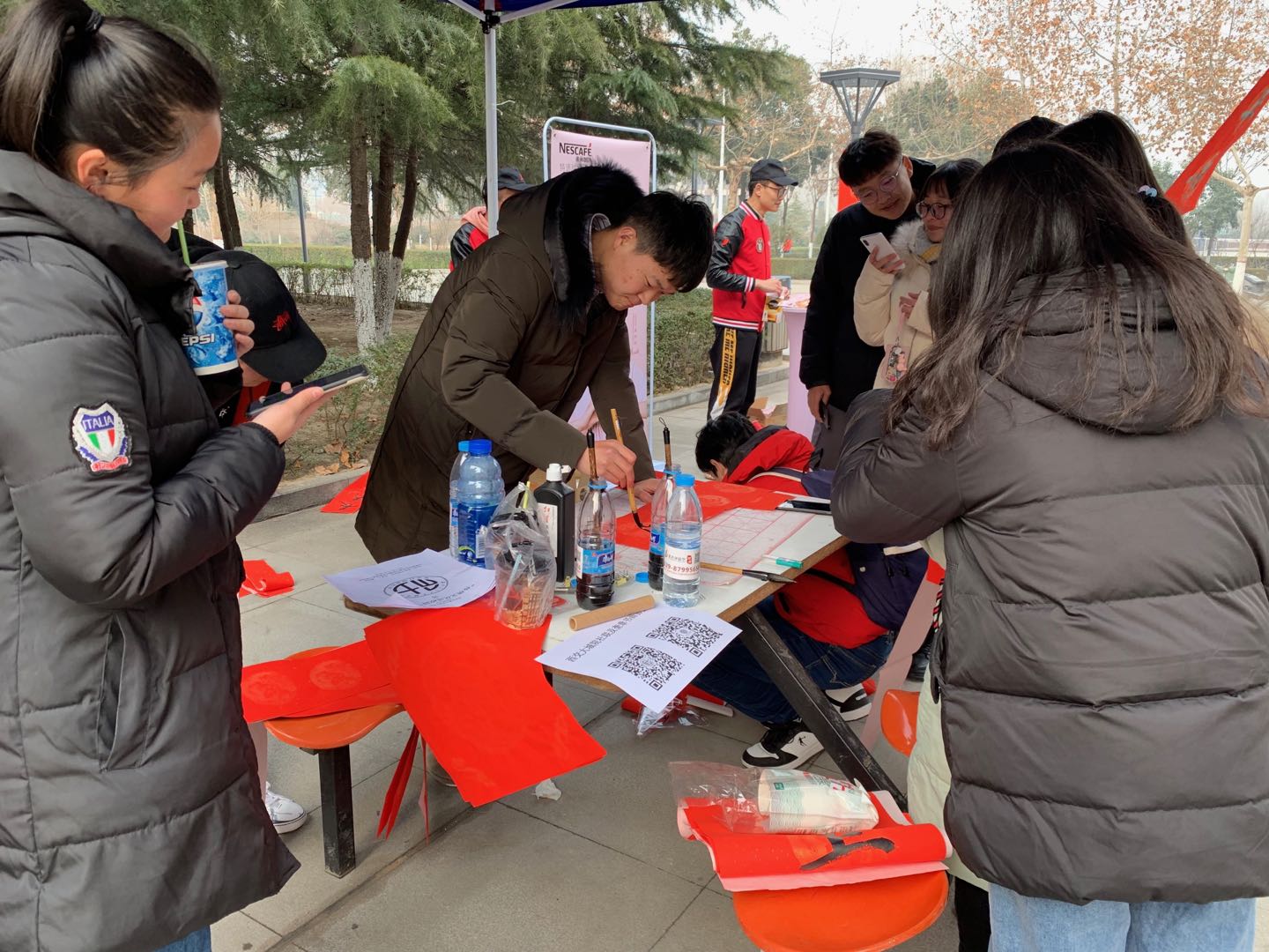 为进一步推进社会主义核心价值观教育,传承中华民族优秀传统文化,提升艺术系书法专业学生学习热情。艺术系团工委携手奎章书画协会、学院社团联合会于1月3号中午在中快楼下举行“新春对联传温暖,学子执笔送祝福”活动。