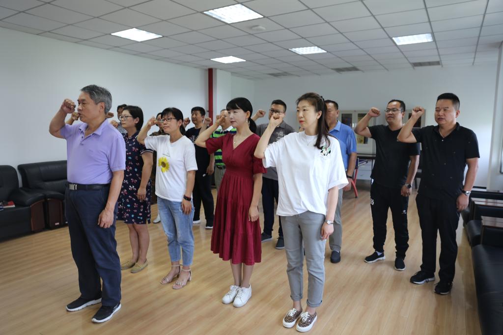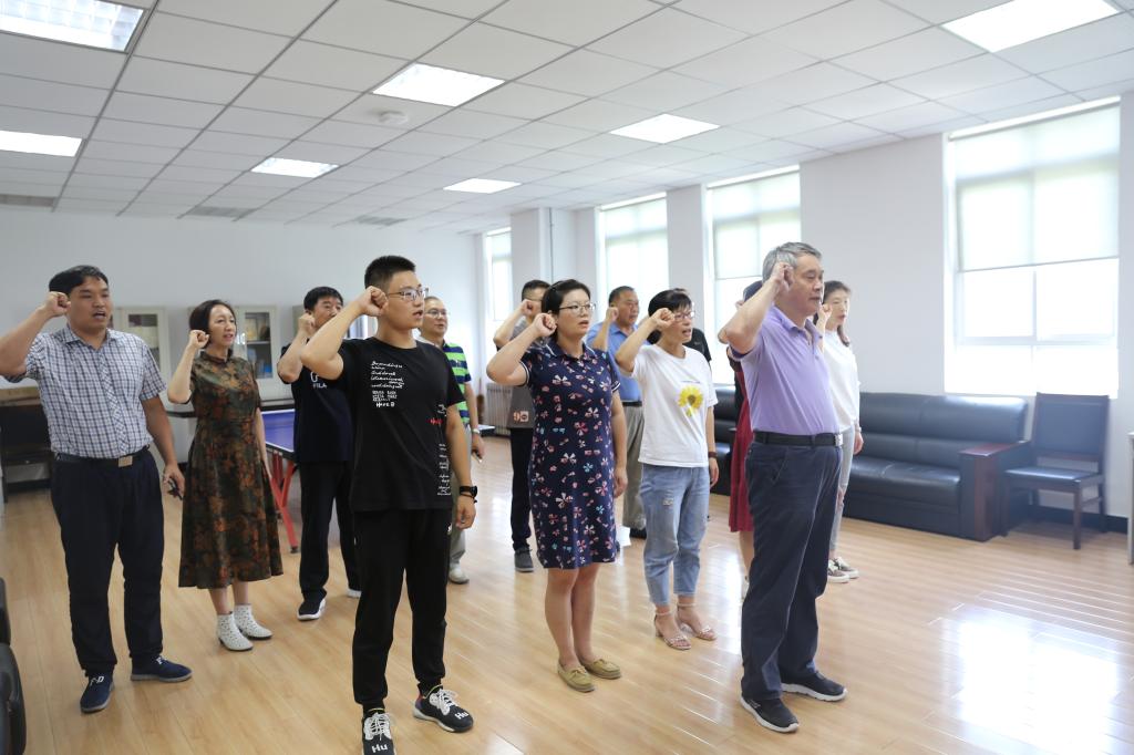 支部全体党员,在支部书记、建设与条件保障部主任张志钢同志的带领下,神情肃穆、举起右拳,整齐地面向党旗庄严宣誓:我志愿加入中国共产党,拥护党的纲领,遵守党的章程,履行党员义务,执行党的决定,严守党的纪律,保守党的秘密,对党忠诚,积极工作,为共产主义奋斗终身,随时准备为党和人民牺牲一切,永不叛党。铿锵誓言在党员活动室内久久回荡,让现场所有党员更加坚定牢记自己的庄严承诺,在工作中以师生利益为重,不忘初心、牢记使命,永守入党初心,时刻以党员的标准严格要求自己、时刻以党员的先进性鞭策激励自己,坚定理想信念,履行职责,为学院后勤保障和平安校园建设工作贡献自己的力量,以实际行动兑现对党的庄严承诺。