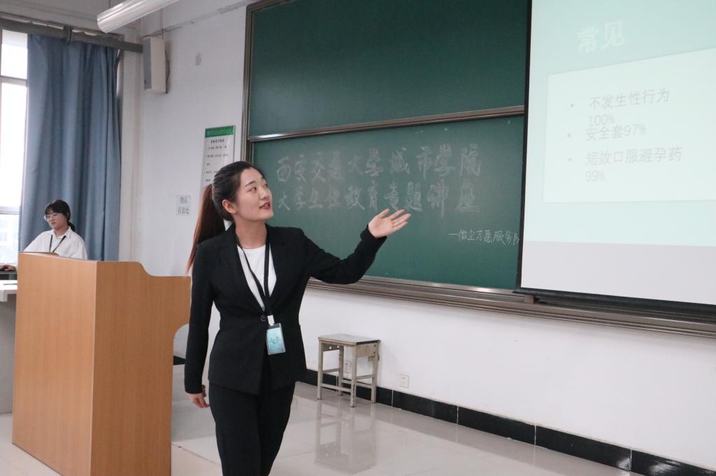 会议伊始,叶超从“什么是爱情”到“什么是性”,讲述到性教育的重要意义,打破了大家对性教育的一贯认知,帮助大家树立正确的性认知和性观念。紧接着,微尘性教育的各位宣讲员从怀孕、流产和避孕三个方面为我们深入讲解了相关性教育知识。通过讲解及观看视频,同学们明白了药物避孕和手术避孕以及其他不正确的避孕方式会给女性带来生理心理双重伤害。之后讲解员为大家介绍了正确、科学的避孕避方式,为同学提升自我保护意识。最后是考验大家所学所获的有奖问答环节,同学们在这一环节参与积极,现场氛围热闹。