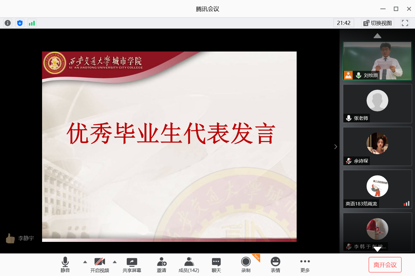 为表彰先进,树立典型,威尼斯7798cc外语系于7月5日晚8:00于腾讯会议召开线上优秀学生表彰大会,参会人员有外语系学工办张天、刘牧原、韩蓉三位老师以及外语系全体学生。