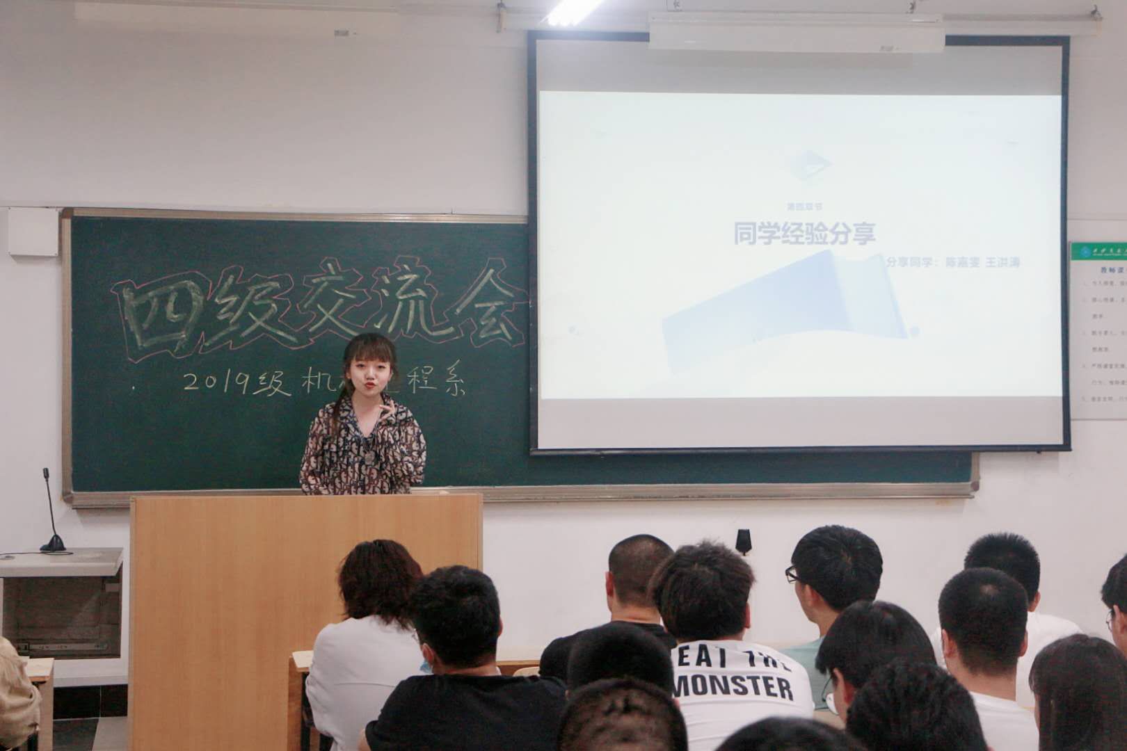 其次,在2019年12月大学英语四级考试中取得548分的王洪涛同学和525分的陈嘉雯同学为大家分享他们各自的学习经验,两位同学分别从四级单项的做题技巧、英语学习的积累以及考前心态等方面做以经验分享。