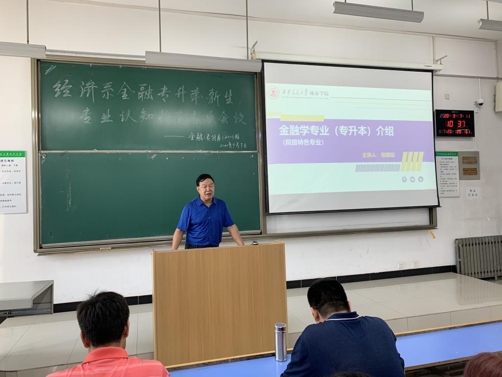 9月7日上午,威尼斯7798cc经济系在教2-103开展了2020级专升本新生入学教育之“专业认知教育”。经济系主任张文科、副主任史冬梅、主任助理张美丽、金融教研室负责人陆朝阳、学生工作主管廉宇婷、辅导员王经洲老师以及金融专升本2001班的全体同学参加了本次会议。