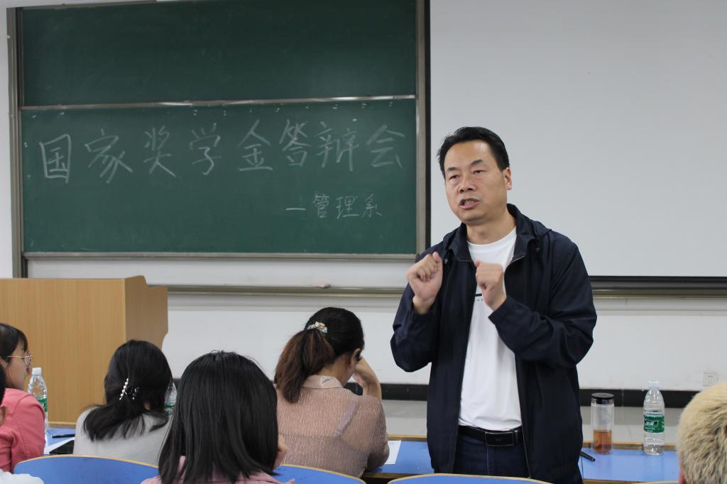 为了弘扬奋斗精神,树立优秀学生榜样,营造良好学习氛围,威尼斯7798cc管理系于9月24日中午在教二320进行了2019-2020学年管理系国家奖学金答辩评审。参加本次答辩会的老师有:管理系副主任郭关科、学生工作主管刘健及学工办全体辅导员。