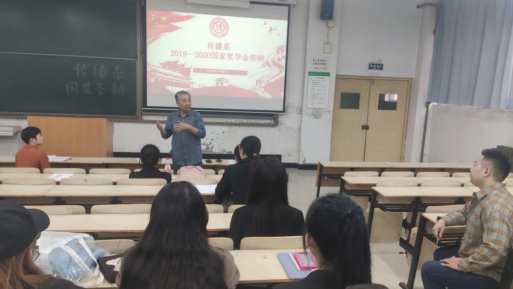 9月25日下午4时,传播系在教学楼C100举行了2019-2020学年国家奖学金候选人答辩评审会。传播系主任刘强老师、学生工作主管杨耀聪老师、团学工作负责人陈欣以及辅导员杨月出席了此次评审会,传播系各年级优秀学生代表也参加了本次活动。