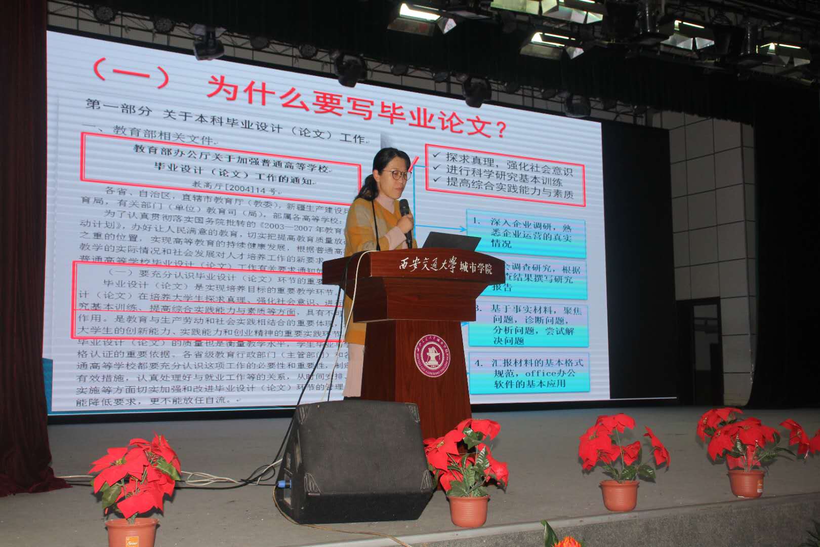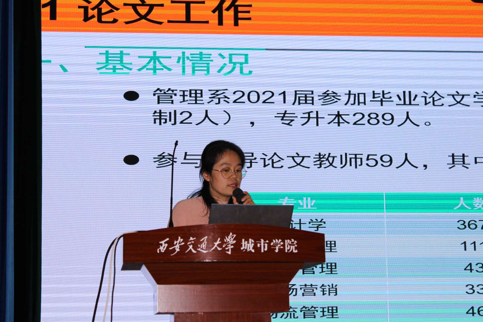 会议伊始,郭关科副主任强调证书和学分是目前毕业生们最应该关注的基础问题,说明了毕业论文的重要性,并讲解了优秀毕业生审核条件。解茹玉老师指出毕业论文的意义,进一步详细讲解了论文写作的基本思路、论文框架,并讲述了论文写作时的常见问题,重点强调了毕业论文的提交时间和提交材料。王佩老师对毕业论文工作安排及毕业审核中可能会遇到的问题进行详细说明。会议最后,刘健老师对本科生毕业授予学士学位实施细则进行说明,而后就结业、就业问题进行了补充说明,使毕业生充分了解了毕业现状,方便毕业生对自身未来发展进行合理规划。