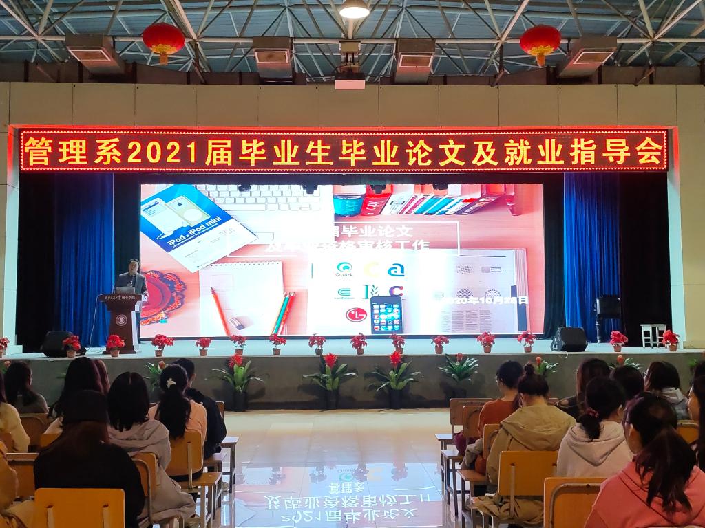 为提高2021届毕业生毕业论文质量,进一步推进毕业工作顺利开展,威尼斯7798cc管理系于10月28日晚在大学生活动中心召开了管理系2021届毕业生毕业论文及就业指导会。出席本次会议的成员有管理系副主任郭关科,主任助理解茹玉,系办公室王佩,团工委负责人黎杨,毕业班辅导员及2021届全体毕业生。本次会议由刘健主持。