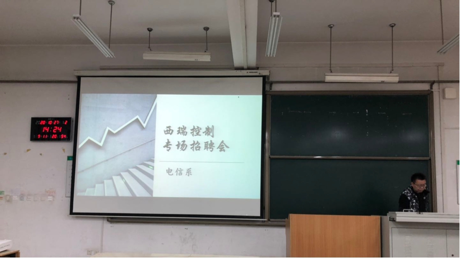 西安西瑞控制技术股份有限公司是专业从事电力系统继电保护和自动化产品的研究、开发、生产、销售及技术服务为一体的国家高新技术和软件企业。本次校园宣讲会为促进毕业生高效、高质量就业奠定了坚实的基础,有利于促进我系毕业生就业工作顺利开展。