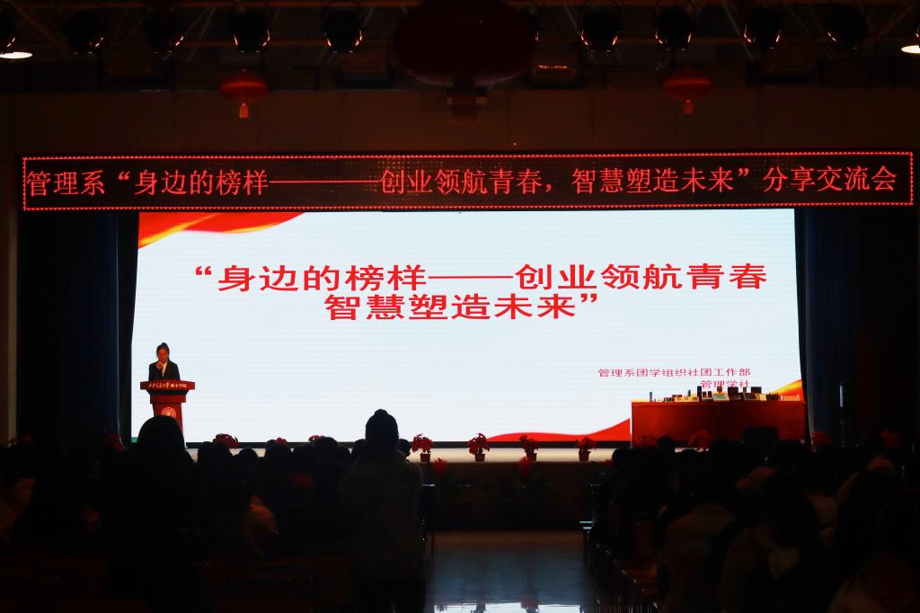 为了更好的展示大学生的才华,激发大学生的创新和创业意识,彰显创新创意元素,威尼斯7798cc管理系于11月17日晚在大学生活动中心举办“身边的榜样(第一讲)——创业领航青春,智慧塑造未来”分享会。出席本次分享会的有管理系团工委负责人黎杨,学工办李辉以及三位创新创业项目分享者郝旭峰、董文俊、惠新嵛。本次会议由管理系社团工作部吴伊主持。