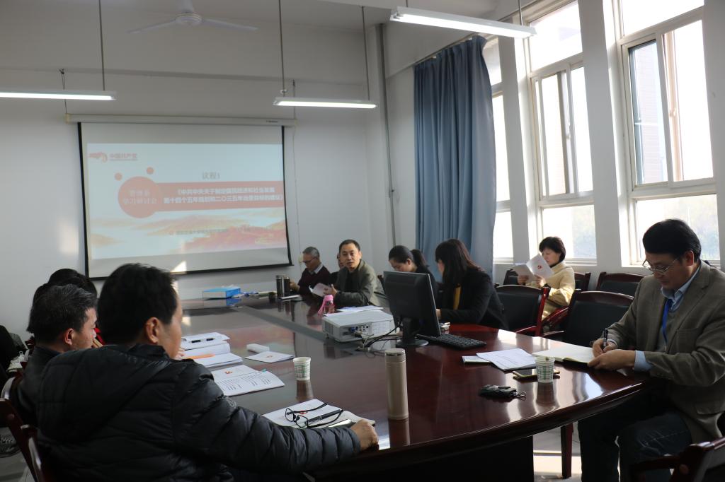 为进一步研究阐释党的十九届五中全会精神,将科研选题、写作与党中央会议精神相统一,管理系教工党支部于11月18日下午在教2-225会议室召开研究阐释党的十九届五中全会精神之课题申报专题会议。出席本次会议的有党委委员冀祥、科技服务中心主任王小青、管理系主任张俊瑞、管理系副主任郭关科、及管理系全体教师。会议由党支部书记解茹玉主持。