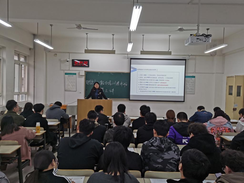 首先,王姣老师对全体学生就业材料的准备进行了指导,重点介绍了毕业生三方协议及毕业生就业推荐表等就业材料在学生求职过程中的意义和作用,从毕业生基本情况、教育背景、个人简历、综合能力表现、学业成绩、自荐书、附件内容等部分的填写为同学们进行了详细的讲解。