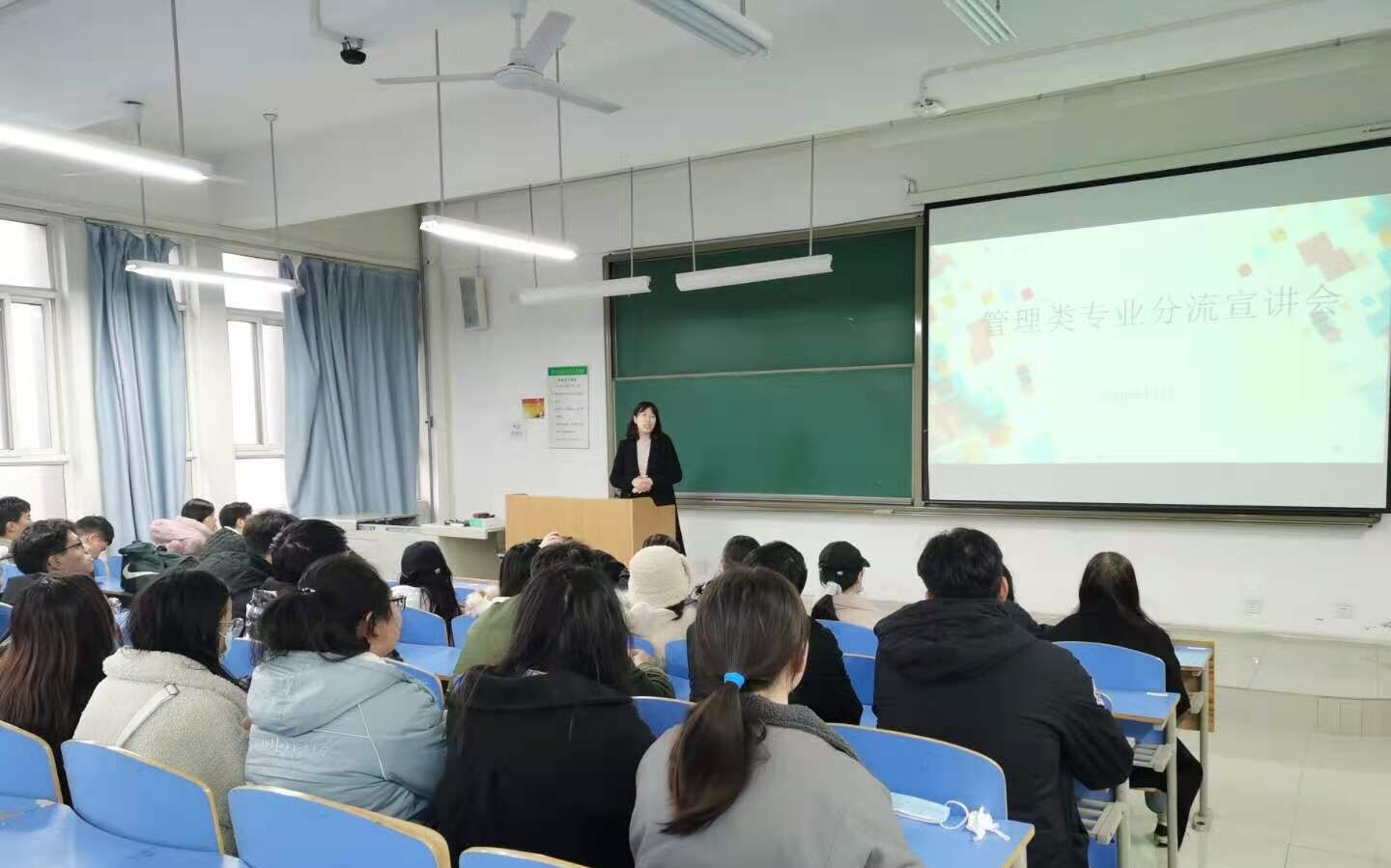 根据专业培养的计划和要求,管理系于12月2日下午在教2-220教室召开2019级工商管理类专业分流宣讲会。参加会议的有管理系副主任解茹玉、物流管理专业负责人王旭、人力资源管理专业负责人穆春晓、工商管理专业负责人宋安玲、市场营销学专业负责人惠春丽及2019级管理类专业全体学生。会议由解茹玉主持。