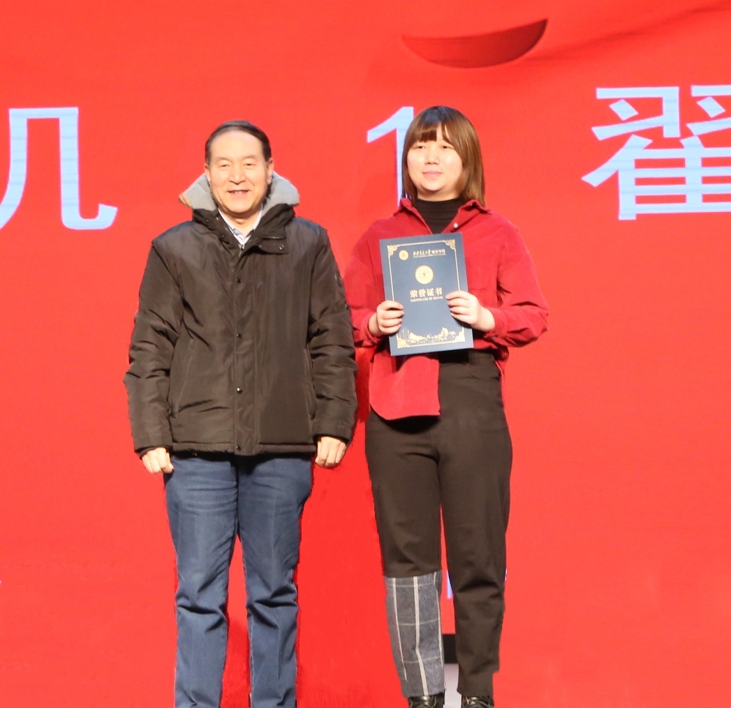 大会第一项,由系副主任许大炜宣读2019-2020学年优秀学学生表彰决定。我系有1名学生获学院“优秀学生标兵”、2名学生获得“国家奖学金”、32名学生获得“国家励志奖学金”、179名学生获得学院奖学金、31名学生获得各类单项奖等。系领导、各班主任与辅导员为获奖学生个人或集体颁奖,以表彰他们在过去一学年在专业学习、学科竞赛、社会实践和学生服务等方面所取得的突出成绩。