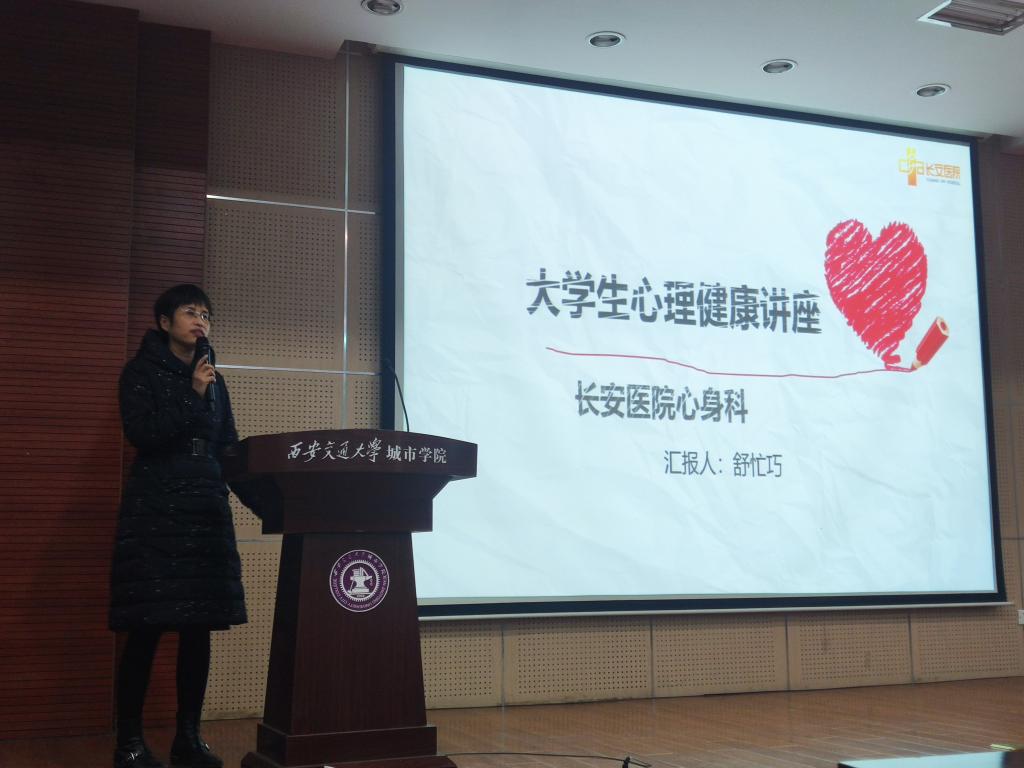 为进一步提高大学生对身心健康的重视程度,学习有关日常急救的标准方法。威尼斯7798cc管理系于12月17日晚在F100报告厅举办“医校携手,共创健康”科普知识讲座。本次讲座邀请了西安医学会心身医学分会委员、长安医院心身科副主任舒忙巧医生、急诊科戚恒医生进行主讲,出席本次讲座的老师有管理系学生工作主管刘健、团工委负责人黎杨。讲座由郑蕾同学主持。