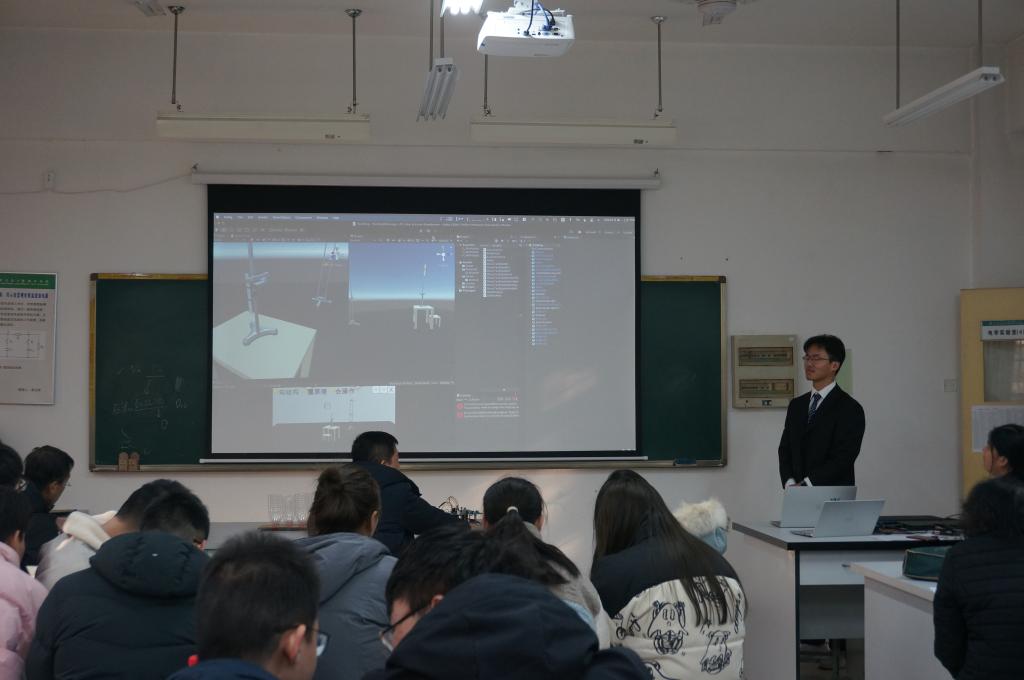 接下来,12个兴趣小组学生依次汇报了本届开放实验的工作,涉及三维虚拟弹性模量实验仪、自制物理实验仪器的实践、一种智能压电生物传感器的研究、3D打印机的维修与使用、混沌现象演示仪的制作、循迹与避障小车设计与制作、环保节能降温装置试验、电磁炮的设计与制作等12项研究课题,成果形式丰富多样,包括幻灯片报告、软件展示和实物模型。从学生激情飞扬的汇报中可以看出,经过12周的学习和研究,各小组认真努力,准备充分,大部分小组得到了理想的结果。其中三维虚拟弹性模量实验仪、自制物理实验仪器的实践可作为自制实验设备为后续综合实验和其他实验教学作为案例教学,也为后续参与实验竞赛打下了基础。最后评出了一等奖3项、二等奖4项、三等奖5项。