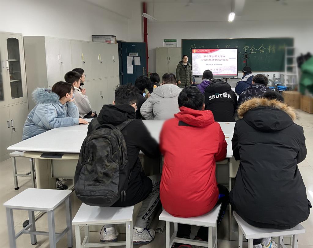 陕西省第七届大学生工程训练综合能力竞赛活动即将拉开帷幕,为更加细致地做好各项赛前准备工作,1月8日上午,机械工程系在实验楼218进行第一次系内评审会,机械工程系主任刘吉轩、首席教授张克猛、徐学武担任评审专家,各参赛代表队指导教师及学生参会,评审会由工训赛负责人李娜娜老师主持。