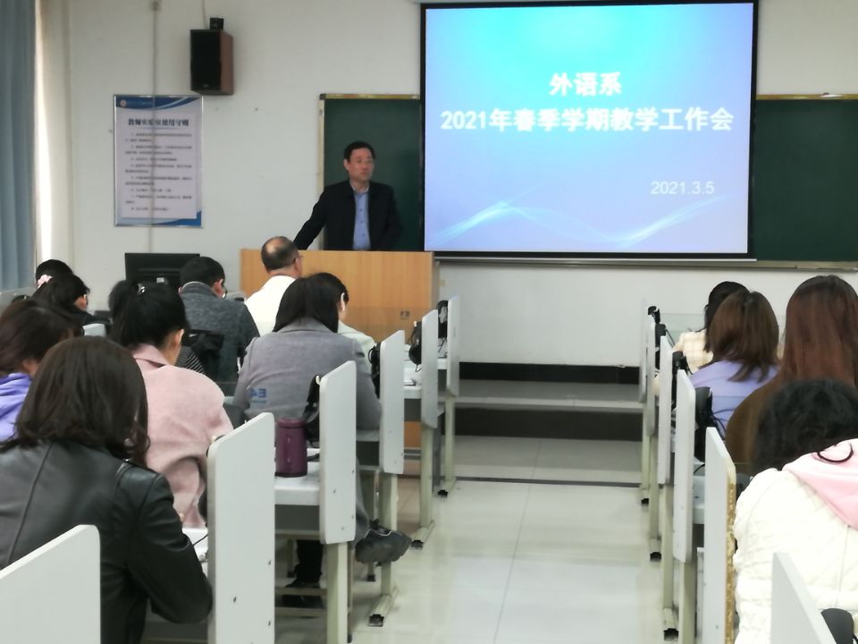 3月5日下午,威尼斯7798cc外语系在教学楼B307教室召开了2021年春季学期教学工作会。外语系全体教职工参加了会议。