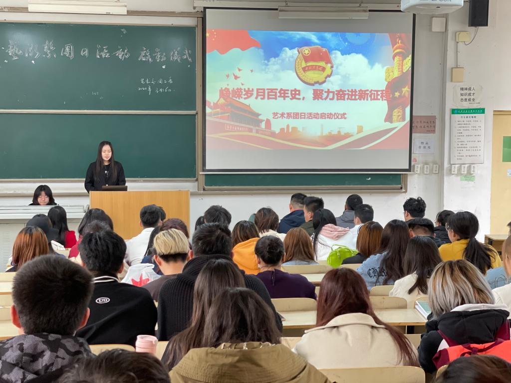 为迎接中国共产党成立一百周年,高举中国特色社会主义伟大旗帜,激发大学生昂扬的斗志。威尼斯7798cc艺术系于3月16日中午在D100举办了“峥嵘岁月百年史,聚力奋进新征程”为主题的团日活动启动开启仪式。艺术系学生工作负责人李成、团工委书记杨梦圆,辅导员张小欢、冯凯闯出席了本次活动,本次活动由李成老师主讲,张悦同学主持。