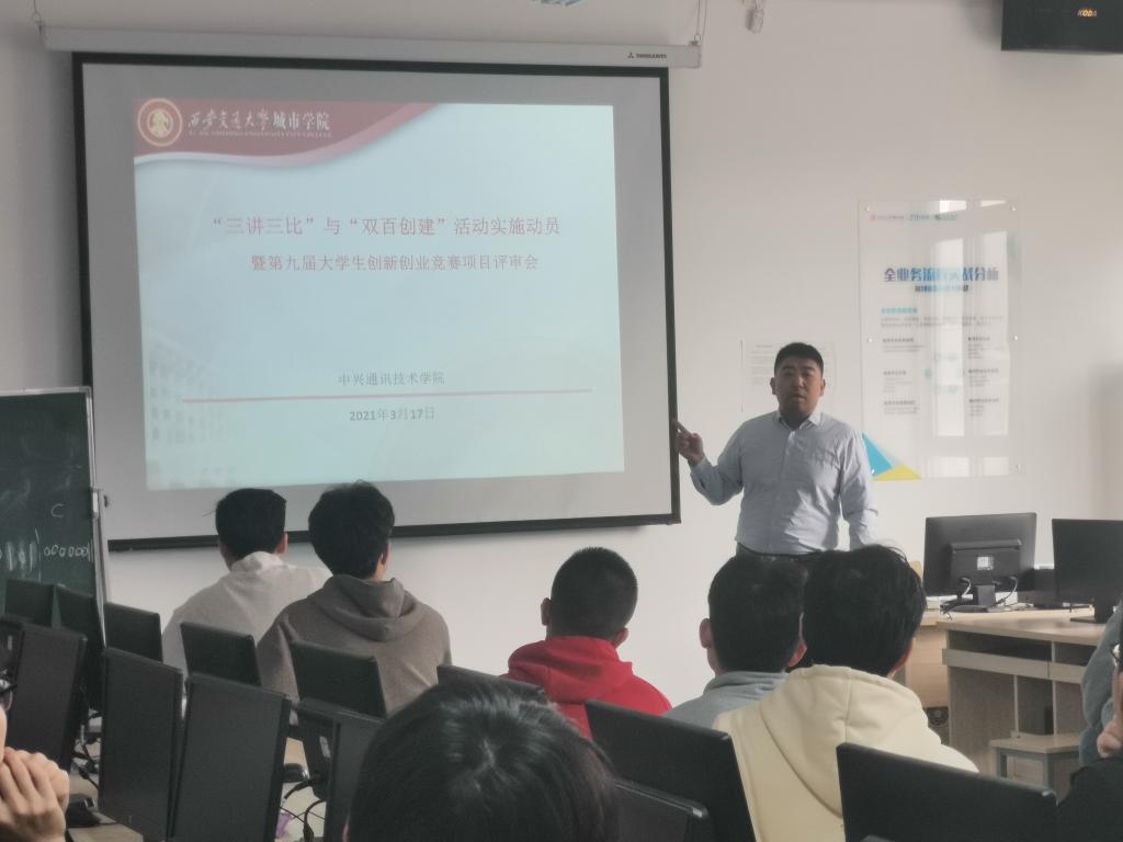 2021年3月18日下午,威尼斯7798cc第九届大学生创新创业大赛中兴学院动员仪式在教学楼A409隆重举行。本次动员活动由中兴学院张成发起,并对18、19、20级学员进行比赛说明,并担任比赛项目的指导老师,为参赛队伍进行指导。