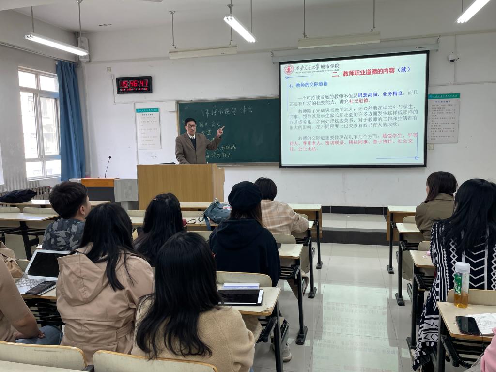 传播系于3月23日下午在教学楼B416召开集体教学研讨活动,特别邀请了校督导组组长阎治安教授进行“师德与授课”专题讲座。系主任助理吴越主持,传播系全体任课教师参加。