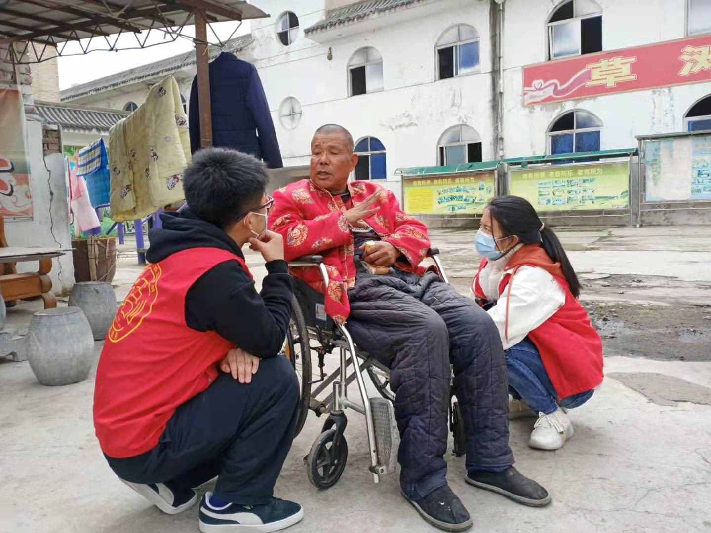 到达敬老院后,志愿者们首先对敬老院进行打扫清理,扫地、拖地。看到志愿者认真勤恳的清扫,老人们也加入进来,并且提供一些指导。在大家的携手之下,敬老院整洁如新。随后,志愿者与老人们一起促膝长谈,聆听老人们分享自己过去的经历,他们的人生阅历丰富,对社会现象、时事政治颇有见地,分享的道理与观点,对志愿者们产生了不小的启发;同时志愿者们的关心与问候,也让老人们倍感关怀,看着他们的脸上洋溢着笑容,志愿者们心中也不禁多了一份成就感和幸福感。最后,志愿队的成员们依依惜别了敬老院的老人们。