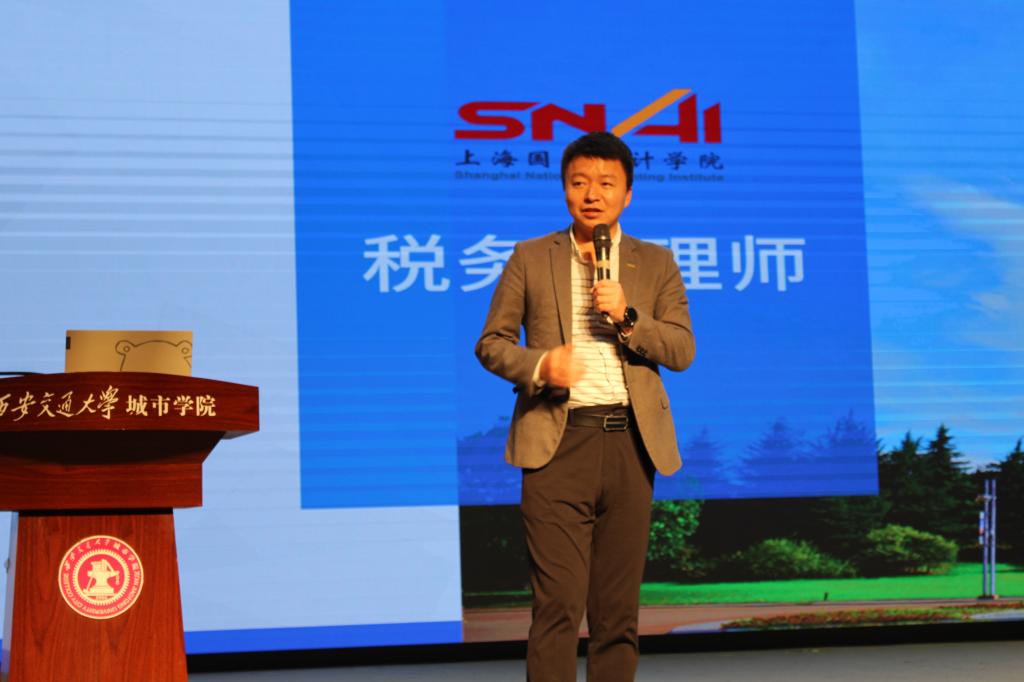 随后,陕西中鸿财税研究院代表人赵江波结合研究院的背景对会计职业发展道路进行分享。他从税务管理师的职业前景、目前的薪资水平与行业痛点,引出国家会计学院在专业特色、课程特色、实践特色所取得的经验,使得同学们对会计从业环境有了更深层次的了解。
