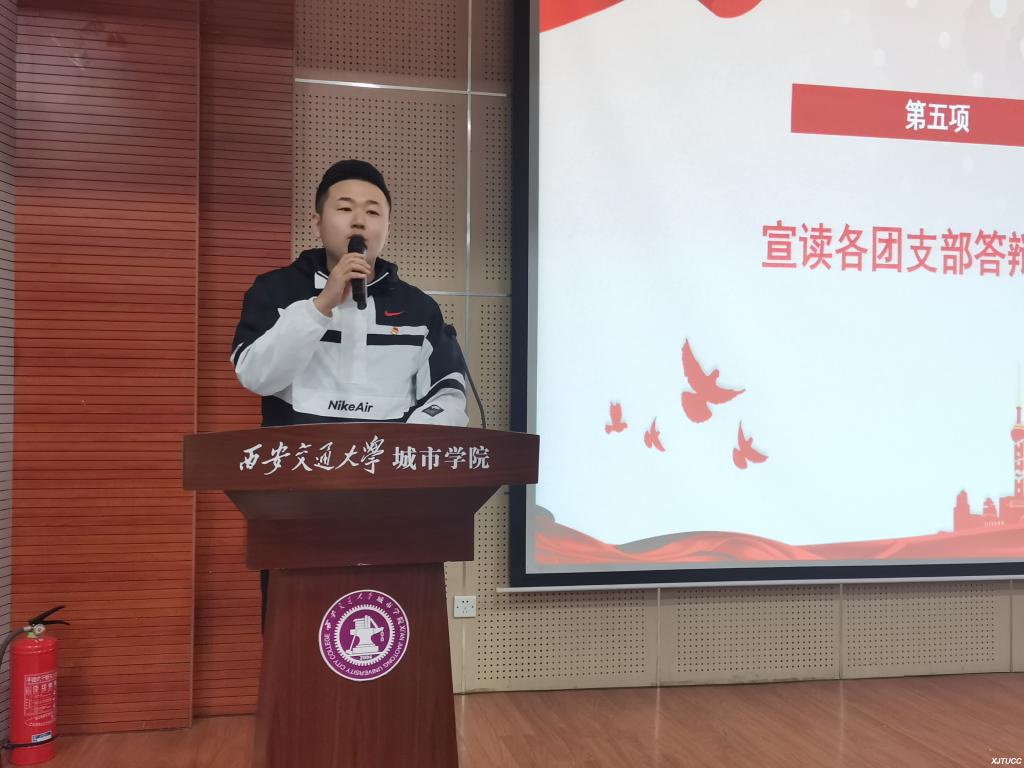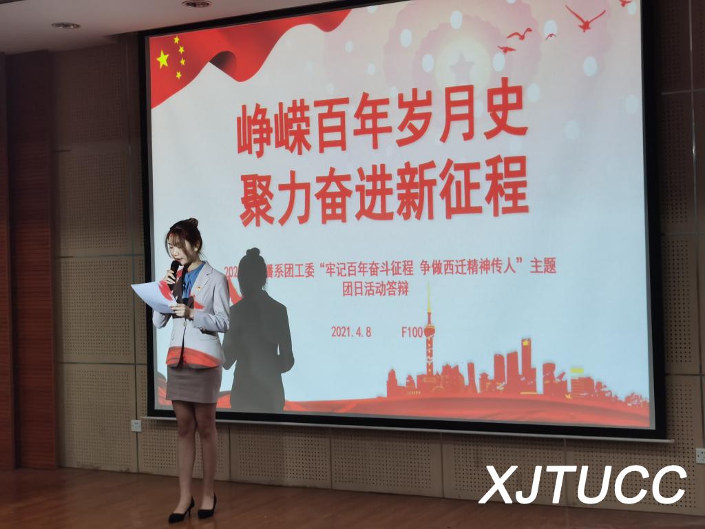 为激发青年团员以昂扬的姿态迎接建党100周年,深入贯彻落实习近平总书记关于青年工作的重要思想,传播系于4月8日晚在F100举行了“牢记百年奋斗征程,争做西迁精神传人”主题团日活动答辩。出席本次答辩会的老师有传播系学生工作负责人杨耀聪,团工委书记陈欣以及辅导员任瑾,参加本次答辩的有传播系2019级和2020级各团支部以及团学会全体成员。