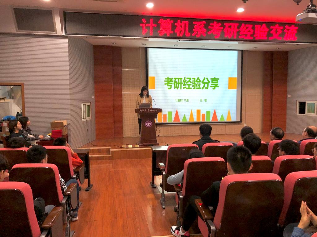 会议第三项由西安交通大学数学学院杨改英教授、外国语学院赵亚军教授分别从坚定考研信念、题型及试题特点、复习计划指导等方面向参会学生进行讲解,两位教授的精彩讲解赢得了在场学生的阵阵掌声。最后,系学生工作负责人刘敏涛向全体学生通报了计算机系近期针对考研已经实施的几项工作内容,分别是全系考研学生情况精确摸底、考研学生组织与跟进工作、系内考研自习室安排情况、考研经验交流安排、校内外考研资源争取与协调等服务性工作。